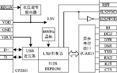 CP2101内集成有多个模块,各自完成不同的功能,如图1所示。