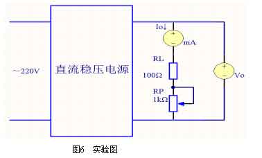 (2)、在稳压电源输出端接入负载和电流表,按如图6实验图连接;